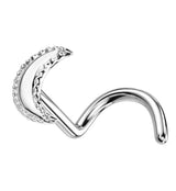 Nose screw rings that are fun for your nose piercing! Quality 14kt white gold nose screw with a crescent moon shaped top that has a beaded outline. Length is 1/4" (6mm). Size is 20G. Sold individually.