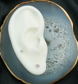 Birthstone stud earrings with a round, alexandrite cz gem on the top, the birthstone for June. Made from 14kt white gold. Size is 20G with a length of 1/4" (6mm). The stud design has a butterfly back. Choose your gem size from 2mm or 3mm! Sold in pairs (2pcs). For healed piercings - these might have small traces of nickel.