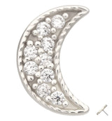 14kt White Gold Milgrain Bead Crescent Moon Clear CZ Threadless Top