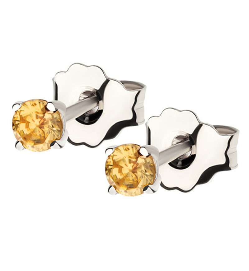 Birthstone stud earrings with a round, topaz cz gem, the birthstone for November. Made from high-quality 14kt white gold with a 20G size and a length of 1/4" (6mm). The stud earring design has a butterfly back. Choose your gem size : 2mm or 3mm! Sold in pairs. For healed piercings - these might have small traces of nickel.