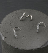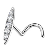 Beautiful nose screw rings that are perfect for your nose piercing! Quality 14kt white gold nose screw with a long oval shaped top that is filled with clear, cubic zirconia gems. Length is 1/4" (6mm). Size is 20G. Sold individually.