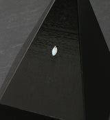Threadless top piece with an oval, marquise shaped synthetic white opalite gem. Made from 14kt nickel-free white gold. Length is approximately 6mm. Top measures 5mm. Sold individually (1pc, top only).
