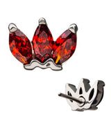 Sold individually (1 piece - top only) 14kt white gold Threadless Size: 5mm x 3mm 316LVM stainless steel pin Red CZ gems Designed to fit the barbells/labrets below Threadless Barbell Threadless Labret