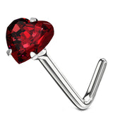 14kt White Gold Magenta Fusia Heart CZ L Bend Nose Ring