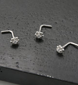 14kt White Gold Sol Clear CZ L Bend Nose Ring
