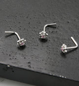 14kt White Gold Sol Pink CZ L Bend Nose Ring