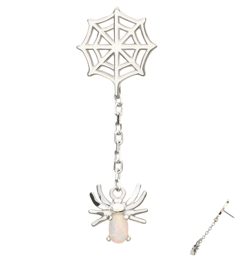 14kt White Gold Spiderweb Dangle Spider White Opalite Threadless Top