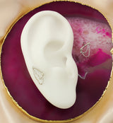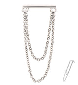 Threadless top piece that has a 9mm length straight bar. Attached is a double, dangling chain. This jewelry piece is made with 14kt nickel-free white gold and a 316LVM ASTM F-138 5mm stainless steel pin. Cool jewelry choice for a variety of ear piercings! Sold individually (1pc).