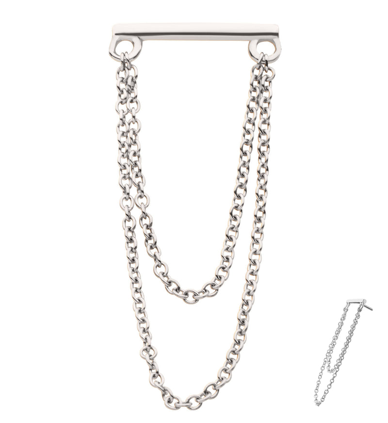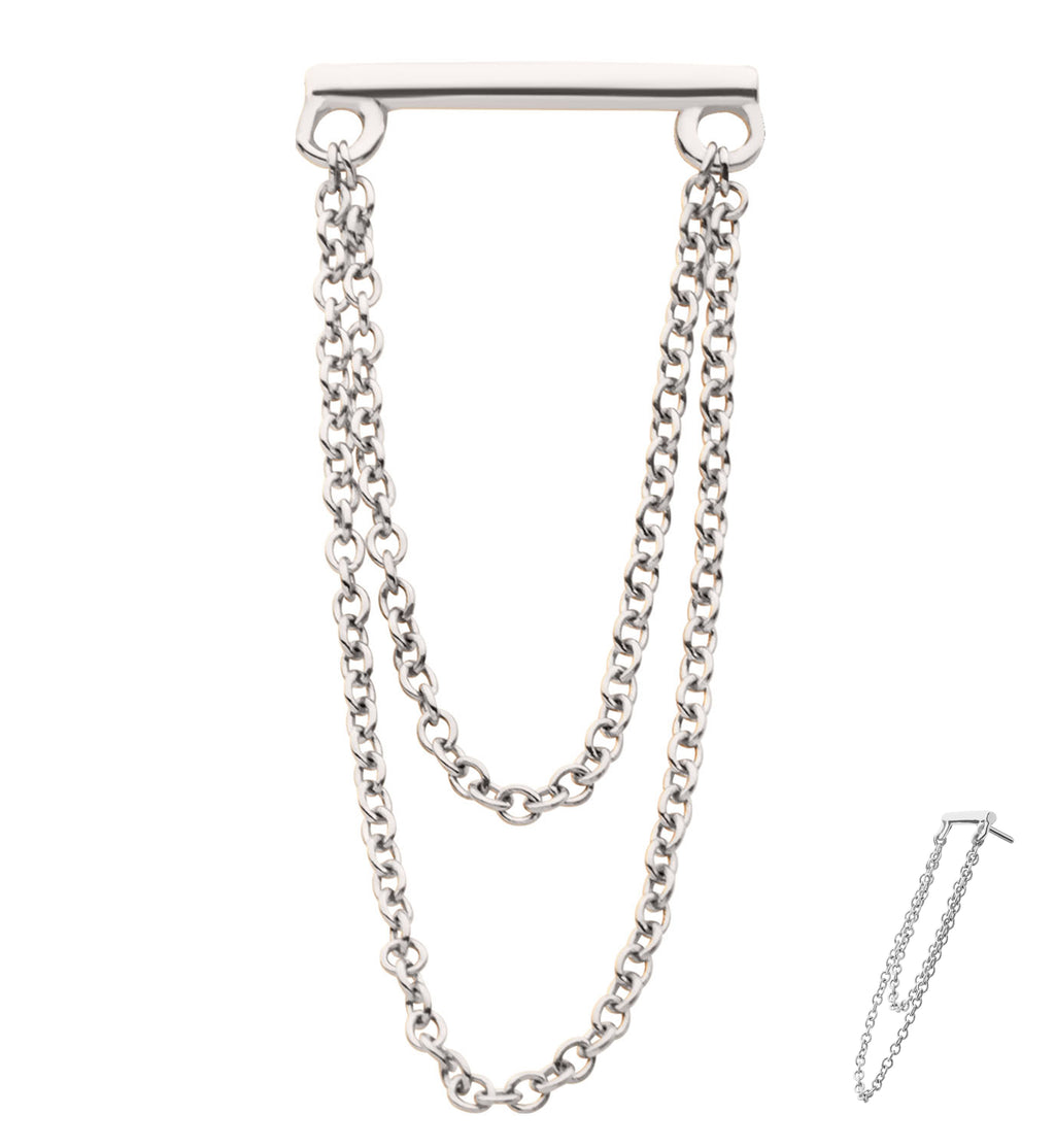 14kt White Gold Straight Bar Double Dangle Chain Threadless Top