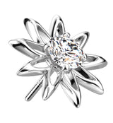 Threadless top piece with a sparkling, sunflower design on top that has a clear cz gem in the middle. Made from 14kt nickel-free white gold. Length is approximately 6mm. Top measures 7mm. Sold individually (1pc, top only).