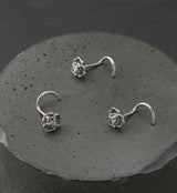 Dainty nose screw rings that are perfect for your nose piercing! Quality 14kt white gold nose screw with a three petal flower on top. Centered in the flower is a sparkling, clear cz gem. Length is 1/4" (6mm). Size is 20G. Sold individually.