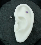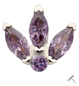 Threadless top piece that has a triple, amethyst marquise cz gem design. Created from 14kt nickel-free white gold with a 316L stainless steel pin. Pin size is 25G. Length is approximately 5mm. Top size measures 5.4mm x 4.7mm. Sold individually (top only).