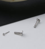Labret with a threadless mini triple ball design on top. Made from 14kt white gold. Disk size is 3mm. Choose your gauge: 18G or 16G. Choose your length: 1/4" (6mm), 5/16" (8mm). Sold individually (2 pieces - top and bottom). For healed piercings.