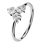 14kt White Gold Trinity Clear CZ Hoop Ring