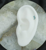 Striking threadless top piece that has a triple, marquise, blue topaz cz gem design that resembles a vine. Made from durable 14kt nickel-free white gold with a 316L stainless steel pin. Pin size is 25G. Length is approximately 5mm. Top size measures at 10.3mm x 4mm. Sold individually (1pc-top only). Cool jewelry top that you can interchange for cartilage or tragus piercings!