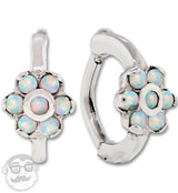 Size: 16 gauge 5/16" (8mm) curved bar Synthetic opal Hinge opens and clicks closed 100% 316L stainless steel