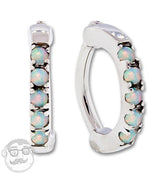 Size: 16 gauge 5/16" (8mm) curved bar Synthetic opal Hinge opens and clicks closed 100% 316L stainless steel