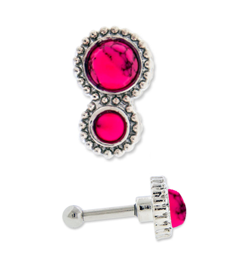 16G Pink Howlite Stone Double Cabochon Tragus - Cartilage Barbell