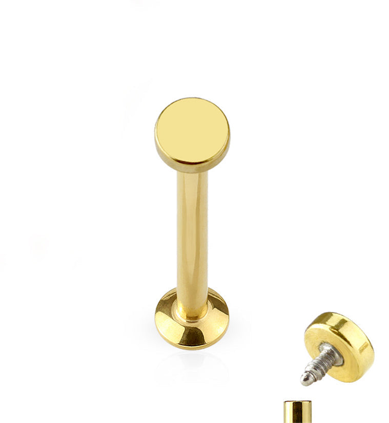 16G PVD Gold Round Top Internally Threaded Flat Back Steel Post