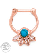 16G Rose Gold PVD Turquoise Lotus Septum Clicker