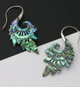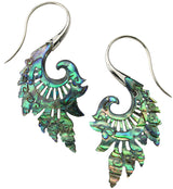 Beautiful abalone shell hangers/earrings that have a decorative, winged design. They are a size 18G and have white brass wire. Height is 70mm and width is 35mm. Each piece is handcrafted and lightweight. Sold in pairs (2 pcs).