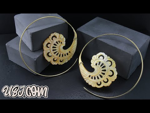 Gorgeous hangers / earrings made from mother of pearl. Lightweight design. They are a size 18G and have white brass wire. Height is 66mm and width is 66mm. Lightweight. Each piece is handcrafted. Sold in pairs (2 pcs).