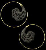 Lightweight hangers / earrings made from buffalo horn into a decorative, lightweight design. They are a size 18G and have brass wire. Height is approximately 66mm and width is approximately 66mm. Each piece is handcrafted. Sold in pairs (2 pcs).