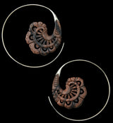 Beautiful hangers / earrings made from areng wood into a decorative, lightweight design. They are a size 18G and have white brass wire. Height is 66mm and width is 66mm. Lightweight. Each piece is handcrafted. Sold in pairs (2 pcs).