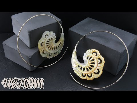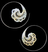 Gorgeous hangers / earrings made from mother of pearl. Lightweight design. They are a size 18G and have white brass wire. Height is 66mm and width is 66mm. Lightweight. Each piece is handcrafted. Sold in pairs (2 pcs).
