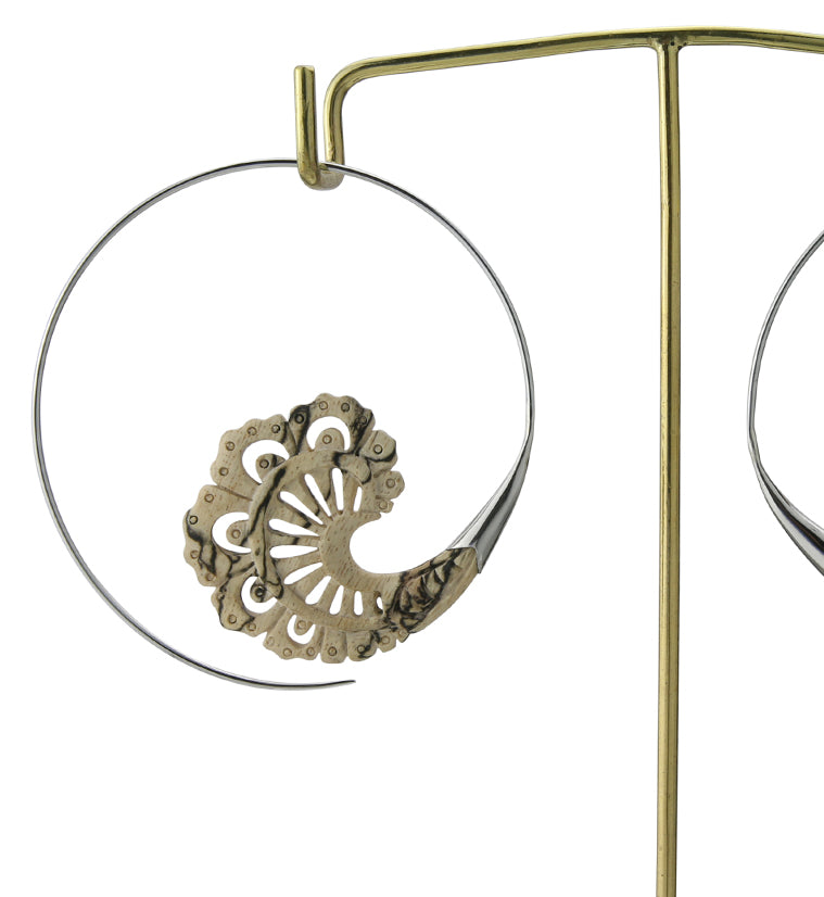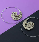 Decorative hangers / earrings made from tamarind wood into a pretty, lightweight design. They are a size 18G and have white brass wire. Height is approximately 66mm and width is approximately 66mm. Lightweight. Each piece is handcrafted. Sold in pairs (2 pcs).