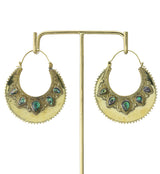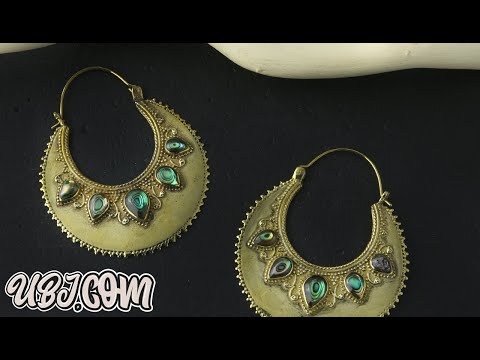 Fun, statement earrings that will had a little shine and sparkling color to your jewelry collection. These earrings are made from brass, with abalone shell inlays through the center. Size 18G or bigger to wear. Sold in pairs. Free domestic shipping.