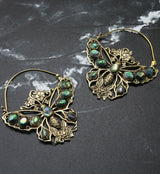 Stunning butterfly earrings filled with colorful abalone shells throughout and handcrafted from brass wire. Wear these earrings in the sun to really see the beautiful abalone shine! These are 18G with a height of 56mm and a width of 50mm. Sold in pairs.