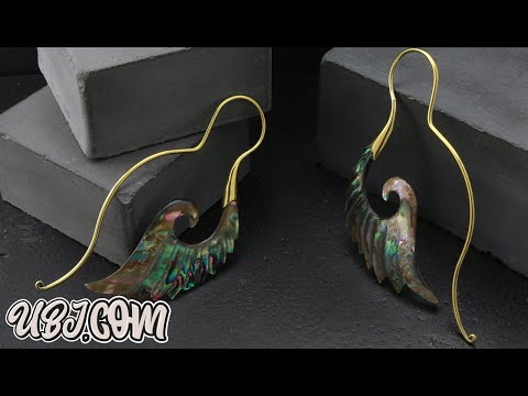Decorative hangers/earrings with a pretty, angel wing design. They are made from shiny abalone shell and are lightweight. They are a size 18G and have brass wire. Height is 62mm and width is 22mm. Each piece is handcrafted. Sold in pairs (2 pcs).