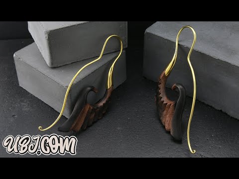 Decorative wooden hangers/earrings with a beautiful, angel wing design. They are made from areng wood and are lightweight. They are a size 18G and have brass wire. Height is 62mm and width is 22mm. Each piece is handcrafted. Sold in pairs (2 pcs).