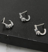 Elegant must-have for your nose piercing! This curved nose ring has a pretty cubic zirconia gem design made from a marquise cut gem and a round cut gem. Made from 316L stainless steel. Size is 18G. Length is 5/16" (8mm). Sold individually. For healed piercings.