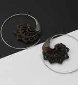 Silver hangers / earrings made from areng wood into a pretty, lightweight design with a beaded accent. They are a size 18G and have white brass wire. Height is approximately 66mm and width is approximately 66mm. Lightweight. Each piece is handcrafted. Sold in pairs (2 pcs).