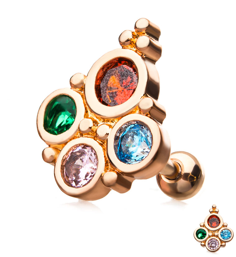 Size: 18 GAUGE Barbell length is 8mm (5/16") Rose gold PVD on 316L stainless steel Cubic zirconia gems Externally threaded Ball size 3mm Size: 11mm x 8mm