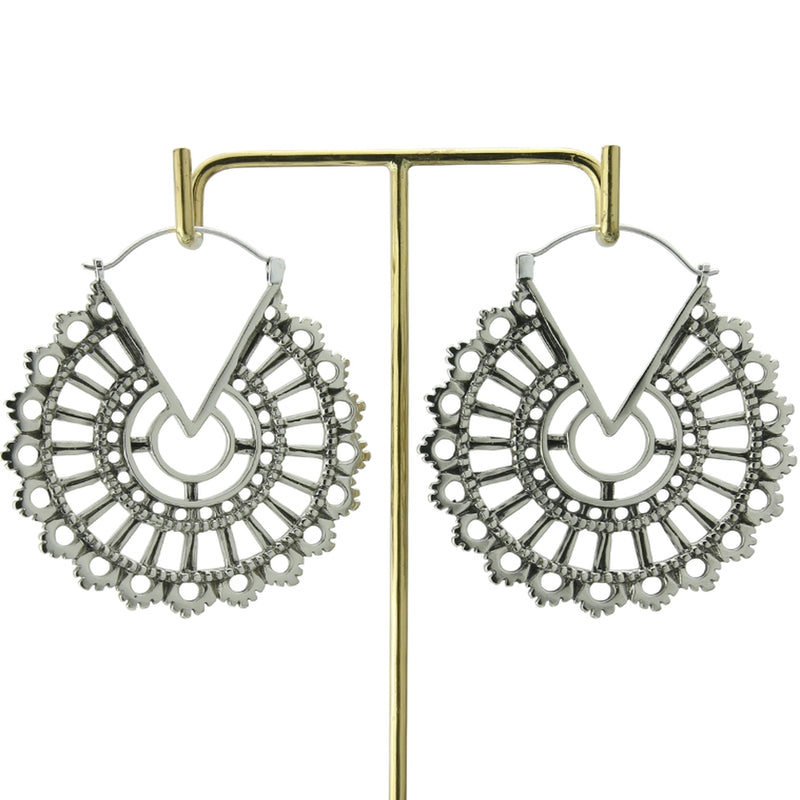 Sold in pairs (2pc) 18G (1mm) or bigger to wear Brass wire Height: 67mm Width: 60mm White brass is not meant for long term wear May oxidize under extreme moisture conditions