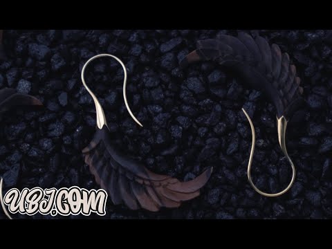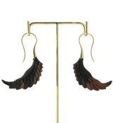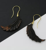 Handcrafted, carved wooden hangers/earrings made from areng wood in the shape of a wing. They are a size 18G and have brass wire. Lightweight. Height is 67mm and width is 20mm. Each piece will be unique in pattern and color. Sold in pairs (2 pcs). For healed piercings/lobes.