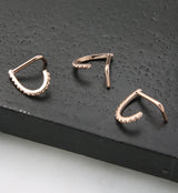Must have for your nose piercing! This curved nose ring has a single layer beaded design and is made from rose gold pvd on 316L stainless steel. Size is 18G. Length is 5/16" (8mm). Sold individually. For healed piercings.