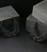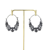Fun steampunk inspired black brass earrings/hangers. Made from white brass wire. 18G (1mm) or bigger to wear. Height is 52mm and width is 40mm. Sold in pairs. For healed piercings.