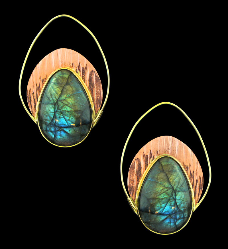 Labradorite Stone Rogue Brass Teardrop Hangers - Earrings