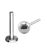 Titanium threadless labrets with a 3mm ball on top. Size is 18G. Choose your length and disk size from the drop down menu! Made from ASTM F-136 titanium. Threadless. Sold in 2 pieces: top and post.