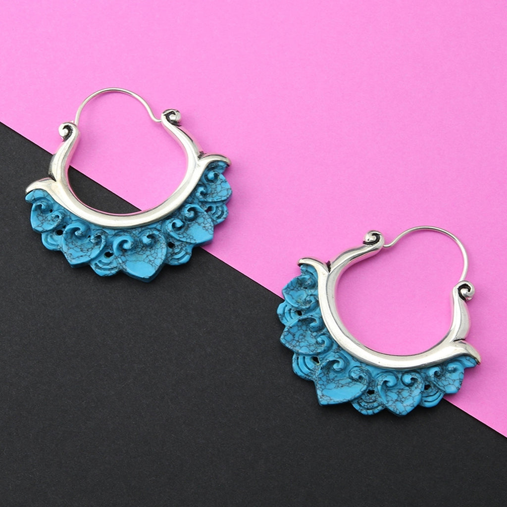 Sold in pairs (2pc) Size: 16G Width: 45mm Height: 50mm Weight: 11 grams Made from brass & Howlite stone Brass is not meant for long term wear May oxidize under extreme moisture conditions