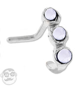 Add some flair to your nose piercing with these curved nose rings! They are made from durable 316L stainless steel and have three accented white howlite stones. Size is 18G with a length of 5/16" (8mm). Great piece to add to your nose jewelry collection! Easy to insert and remove. Recommended for healed piercings. Sold individually (1pc).