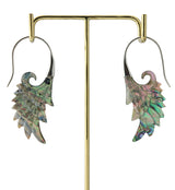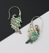 Winged hangers/earrings with a beautiful design. They are made from mesmerizing abalone shell and are lightweight. They are a size 18G and have white brass wire. Height is 63mm and width is 24mm. Lightweight. Each piece is handcrafted. Sold in pairs (2 pcs).