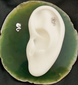 18kt solid white gold threadless piece that has a mystical dragon design. Effortless to fit on most threadless posts, it measures 10mm x 6mm. The pin is about 25G and is made from 316L stainless steel. Such a great piece for your cartilage or tragus piercing! Sold individually.