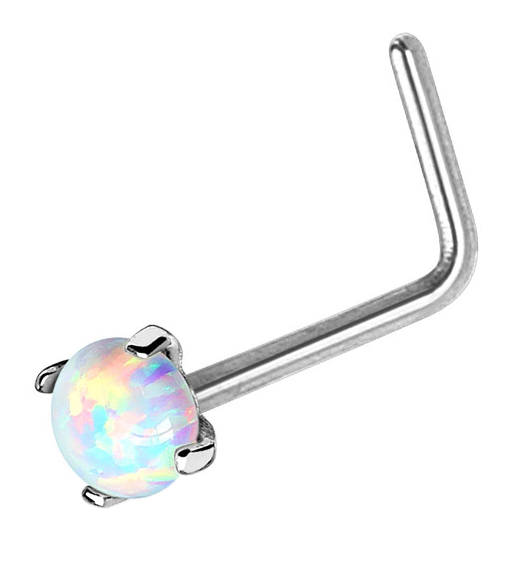 20G 14kt White Gold L Bend Opalite Top Nose Ring