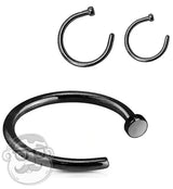 Stainless steel nose hoop rings that are made from titanium ion plated black on durable 316L stainless steel. Pick from 20G and 18G and choose your diameter size from 1/4" (6mm), 5/16" (8mm), 3/8" (10mm), 7/16" (11mm). Sold individually (1pc).