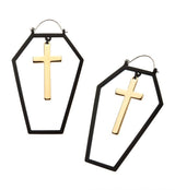 20G Black Coffin Outline Gold Cross Plug Hoops